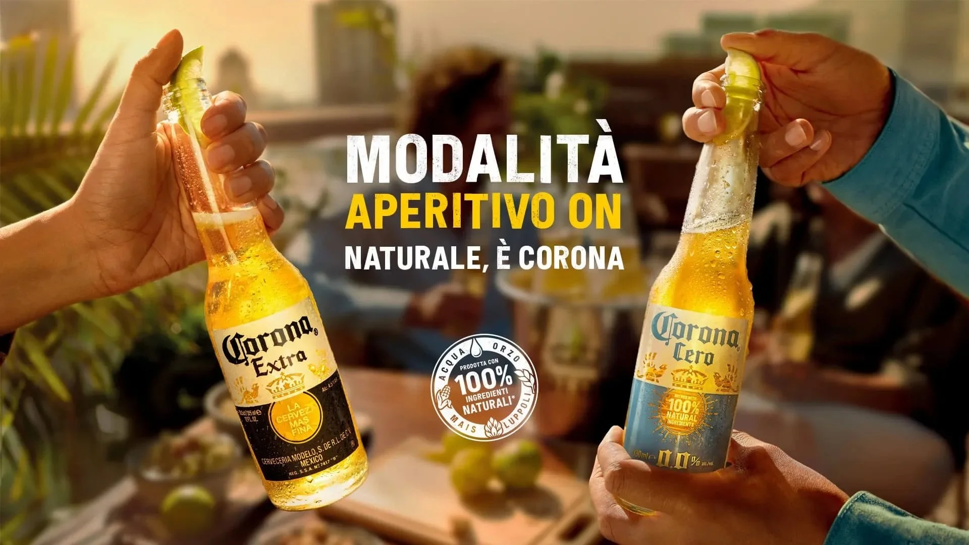 campagna di posizionamento delle birre corona extra e corona cero (nuova alternativa senza alcool) come drink ideali per settare il mood aperitivo.